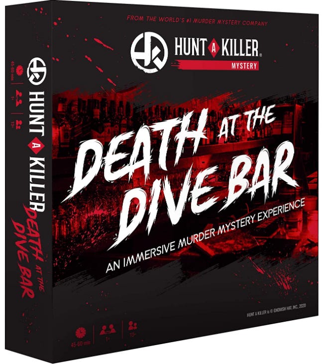 Hunt A Killer designs home murder mystery games that make for a good night in. Decipher clues, collect evidence, and crack codes together. Like an escape room you do in your house. Available here on Amazon.